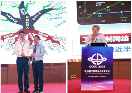 本届大会同期举办了Journal of Control and Decision 2024年度第一次编委工作会议暨JCD创刊十周年纪念会,并于5月26日颁发了(CCDC 2024)优秀青年论文奖、《控制与决策》2023年度(学术热点)最佳论文奖。典礼最后,东北大学信息科学与工程学院院长李鸿儒教授代表东北大学向本届会议承办单位肉漫屋