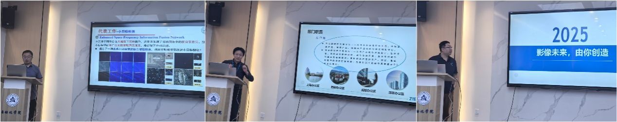 毕业生在中兴通讯的职业发展良好态势,并介绍了中兴通讯最新招聘需求。随后,智能科学与技术系主任姚西文教授、李晖晖副教授和夏辰副教授分别介绍了团队主要研究方向、研究成果等情况。中兴终端影像算法部部长崔小辉、软件技术总工于峰分别就影像及软件部门骨干业务、技术发展情况进行了介绍。随后,双方重点围绕终端软件和影像技术,包括计算机视觉、计算摄影、图像处理、多模态算法等契合方向进行了深入探讨与交流。