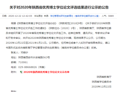 根据《陕西省优秀博士学位论文评选办法》(陕教规范[2018]9号)和《关于做好2020年陕西省优秀博士学位论文评选工作的通知》(陕教位办〔2020〕1号)文件精神,陕西省教育厅和陕西省学位委员会组织开展了2020年省级优秀博士学位论文评选工作。经单位推荐、通讯评议、专家会议评审和厅务会审议,肉漫屋