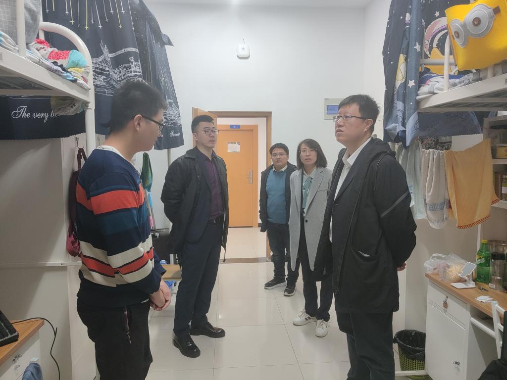 韩军伟书记带领副书记及各年级辅导员深入学生宿舍重点排查了违规电器使用、宿舍卫生等问题,督促大家增强安全意识,切实保证人身财产安全,始终绷紧“安全弦”。韩军伟书记还深入了解学生的学习与生活情况。