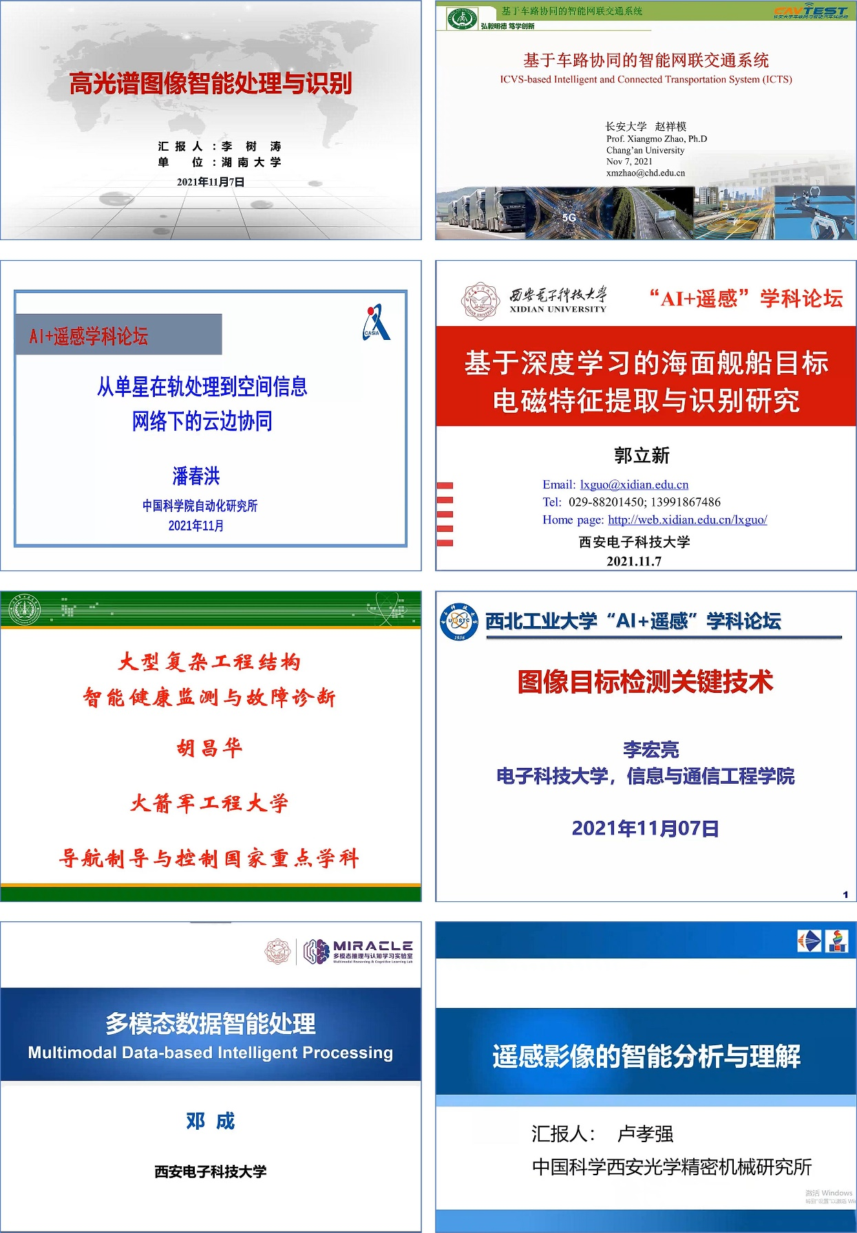 湖南大学李树涛教授分享了高光谱图像智能处理与识别的相关研究,长安大学赵祥模教授介绍了基于车路协同的智能网联交通系统,中国科学院自动化研究所潘春洪研究员分享了从单星在轨处理到空间信息网络下的云边协同,西安电子科技大学郭立新教授介绍了基于深度学习的海面舰船目标电磁特征提取与识别研究,火箭军工程大学胡昌华教授分享了大型复杂工程结构智能健康监测与故障诊断,电子科技大学李宏亮教授分享了图像目标检测技术,西安电子科技大学邓成教授分享了多模态数据的认知与推理,中国科学院西安光学精密机械研究所卢孝强研究员报告了遥感影像的智能分析与理解,肉漫屋