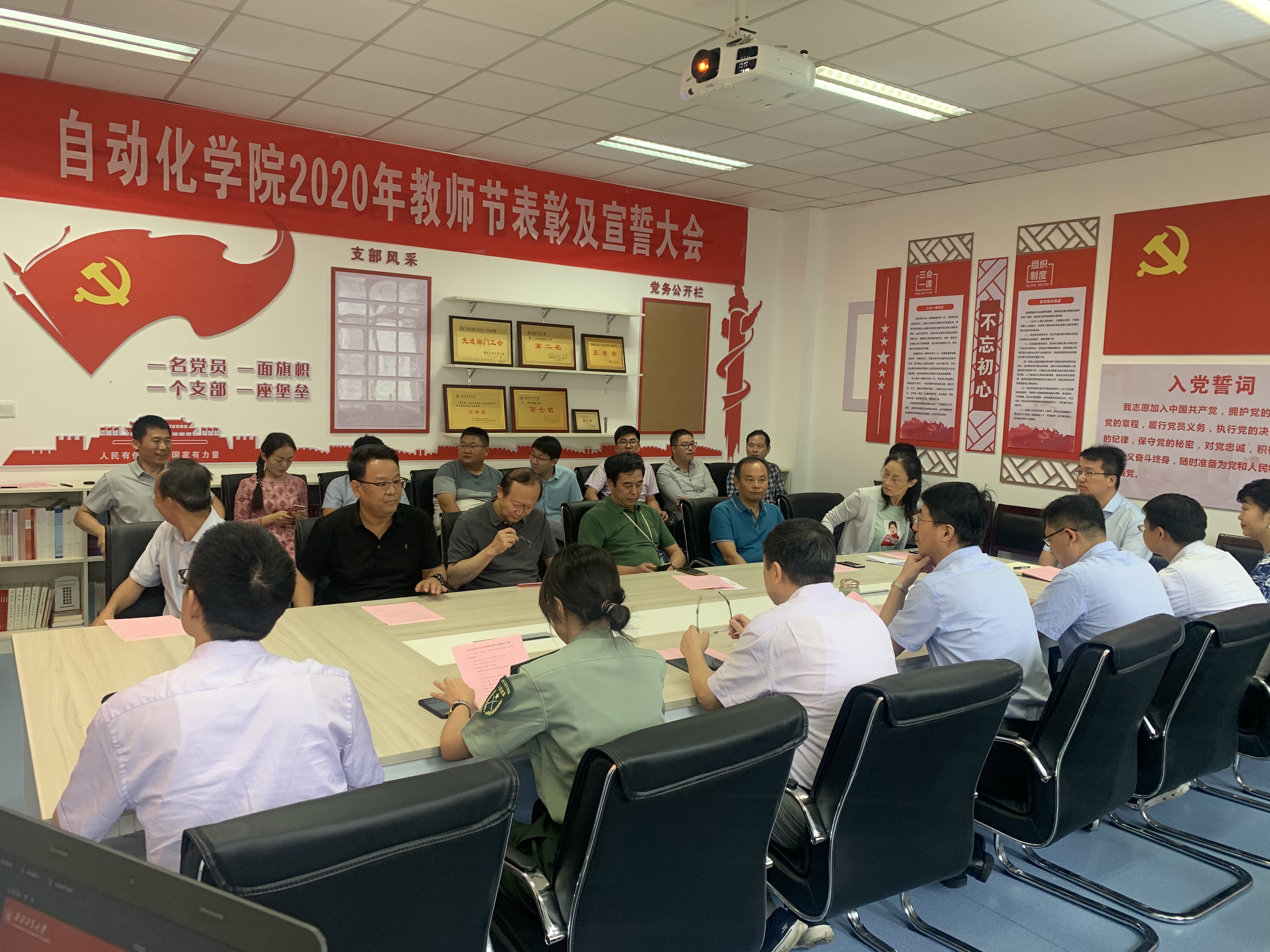 于9月10日上午10:00点在学院楼327党员活动室举行了2020年教师节表彰及宣誓大会。学院党委书记潘泉、院长黄攀峰,副书记李伟林、马玥,副院长许斌、刘准钆、王小旭,党委委员王长青,获奖教师及教师代表参加了本次大会。会议由党委副书记李伟林教授主持。