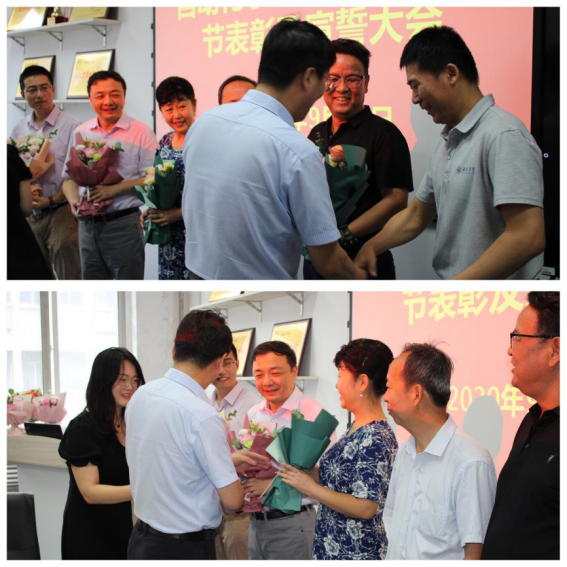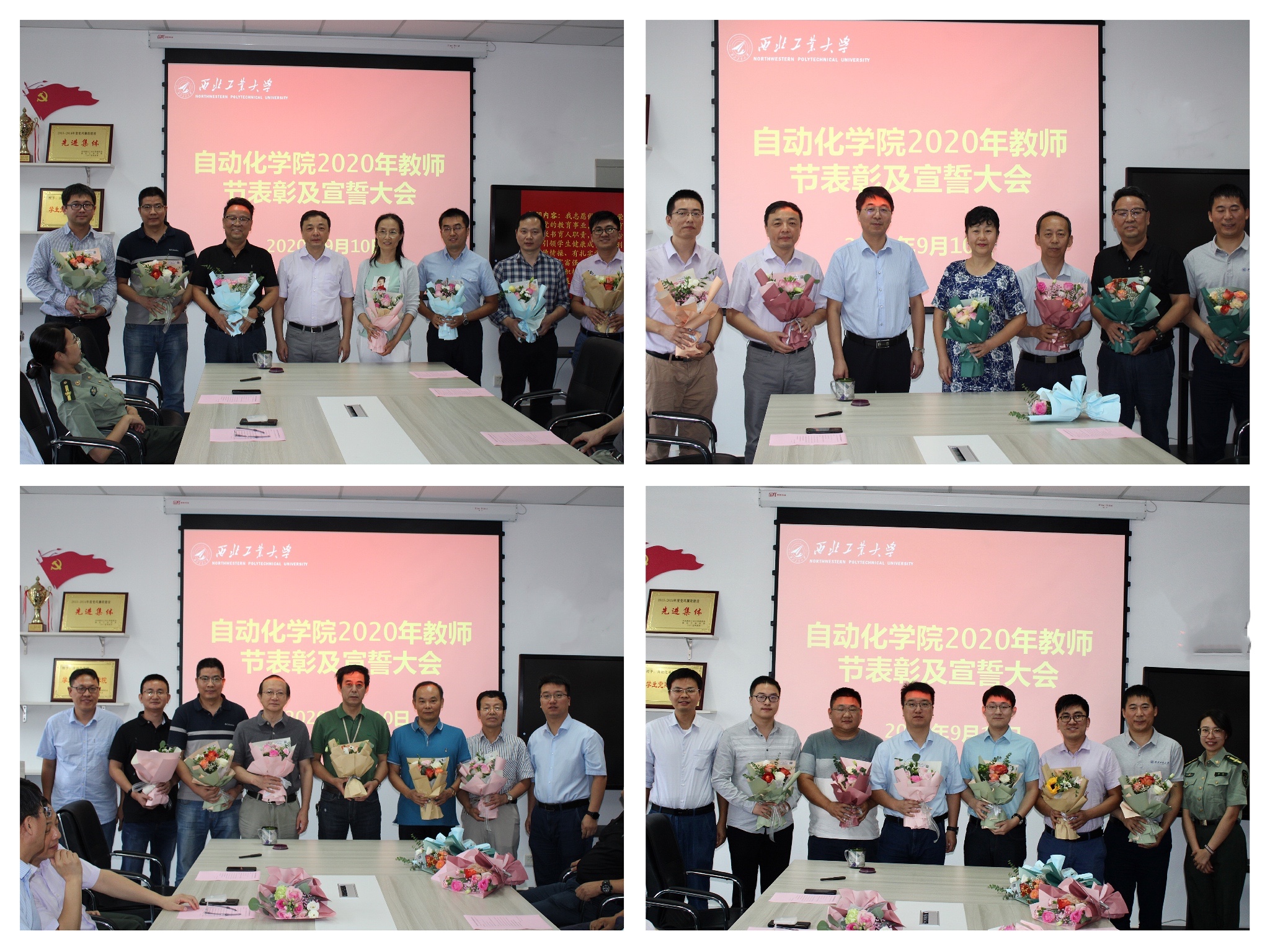 接下来,由学院领导班子成员潘泉、黄攀峰、马玥、许斌、刘准钆、王小旭分别为获奖教师颁奖并与大家合影留念。此次表彰大会有25名教师获奖,其中包括“肉漫屋