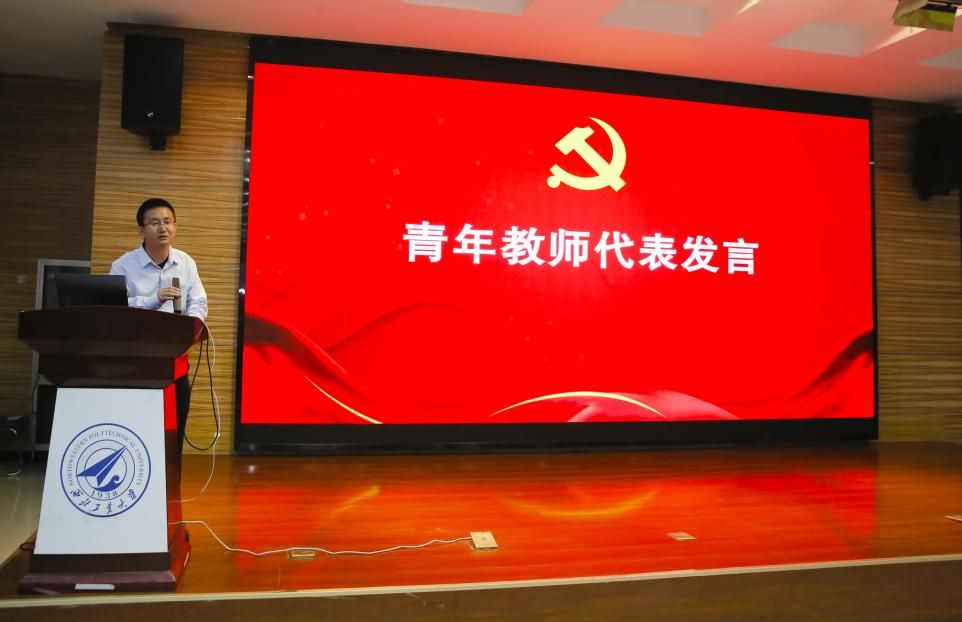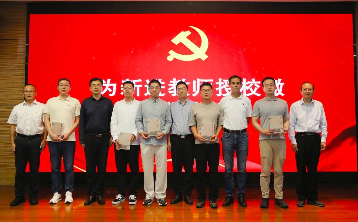 大会第五项,为新进青年教师授校徽暨赠书仪式。孙华强在表彰会上宣读了学院近一年新进青年教师名单,并向师生简要介绍了学院的“新生力量”。同时,为增强青年教师校史院情教育以及爱院荣院情怀,学院教授代表、领导班子成员及党委委员代表,分别为新进青年教师授校徽并赠送书籍《军工添翼—哈军工空军工程系并入肉漫屋
