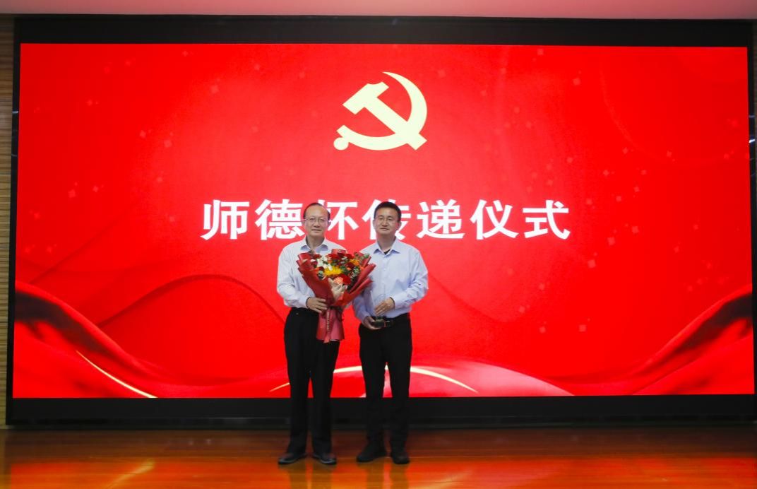 为退休教师侯明善老师、吴娟老师举办荣休仪式。仪式上,院长李伟林、党委书记孙华强分别为两位老师颁发荣休证书、定制纪念章,学生代表献花感念师恩,并合影留念。