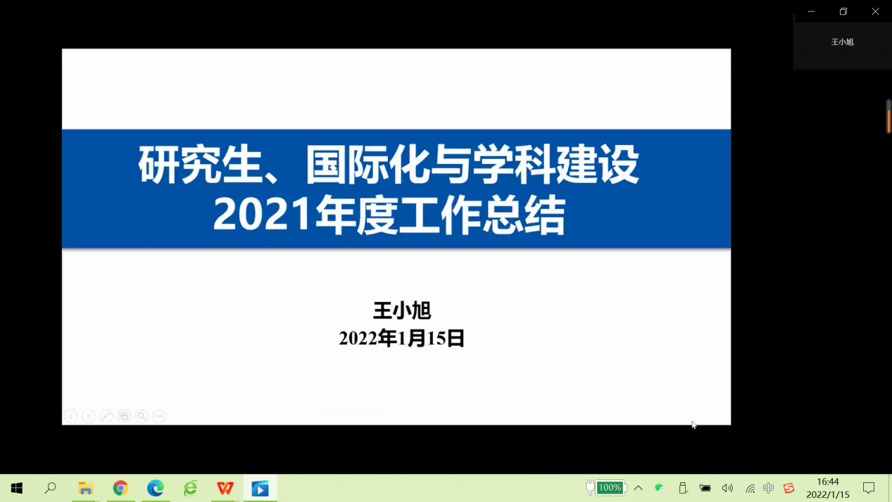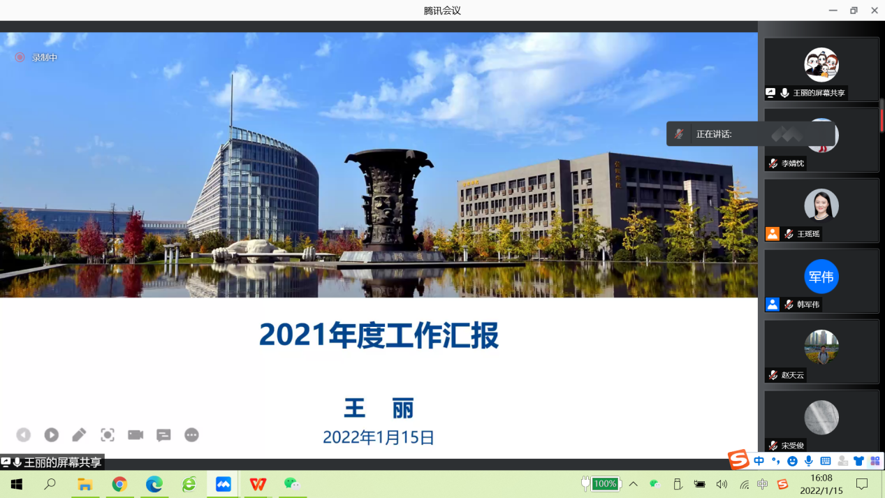于1月15日线上召开2021年度五、六级领导人员述职考核大会。学院领导班子成员及全体教职工180余人参加。会议由学院党委书记韩军伟同志主持。