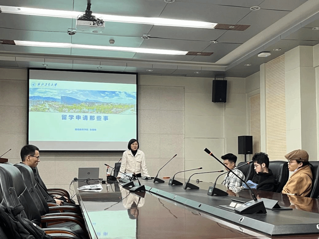 341会议室成功举办。学院邀请继续教育学院留学服务中心的张菊艳老师开展座谈交流,2019级本科辅导员周中正和各年级有留学意向的同学参会。