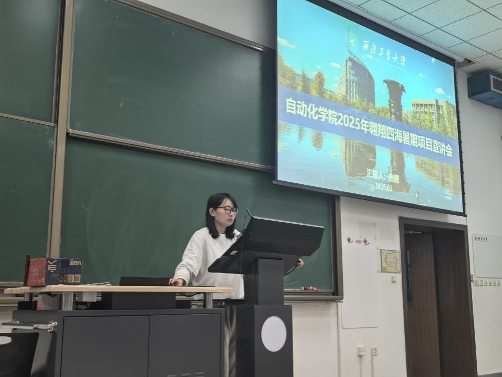 随后,焦健详细介绍了学校2025年翱翔四海暑假项目的整体情况和相关政策,并重点阐述了学院东京大学、筑波科学城航天航空与AI夏令营项目,德国亚琛工业大学人工智能与自动化应用项目,澳大利亚悉尼科技大学工业控制系统与工业自动化和机器人培训实践项目具体情况。她从项目类型、课程设置、申请条件、资助政策及注意事项等多个维度进行深入讲解,并通过照片分享了往届海外交流项目的学习与生活情景,生动直观地展示了项目实际情况。她鼓励同学们积极把握机会,参与国际交流项目,提高自身竞争力。
