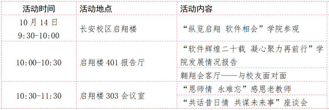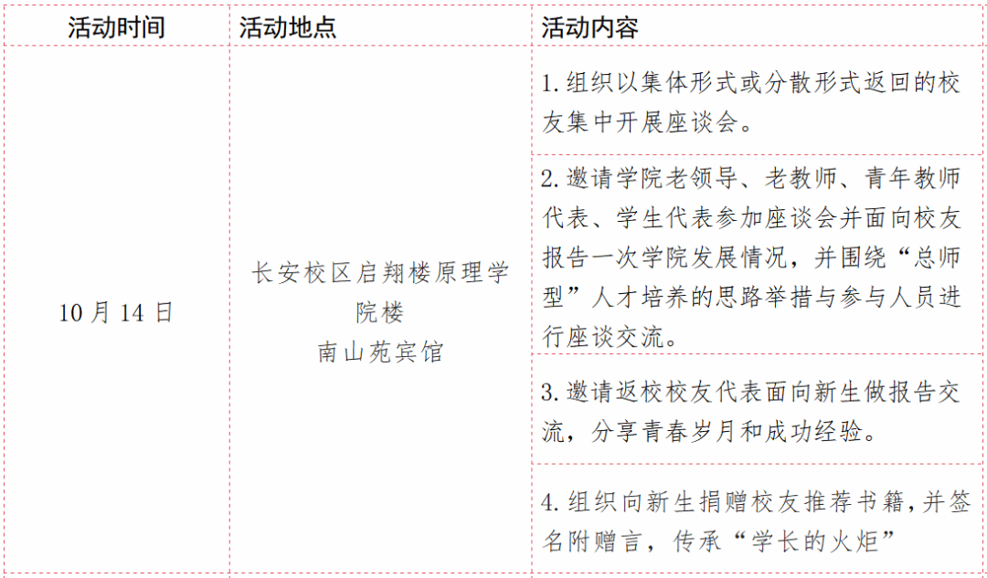 温馨提示:活动将开放部分教室供校友拍照或召开班会。