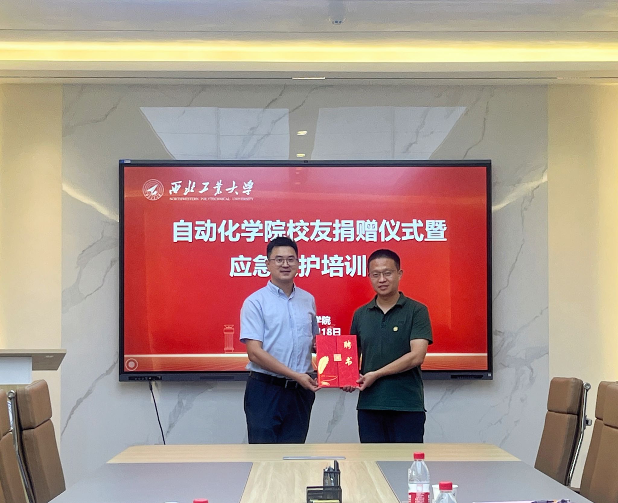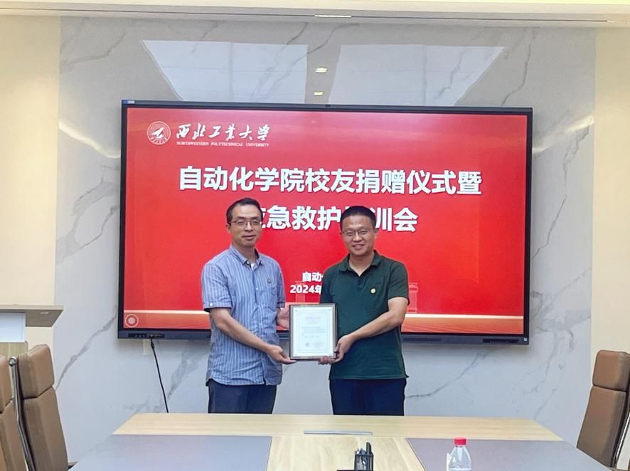 李伟林与校友窦玉宝共同为捐赠的AED(自动体外除颤器)设备进行揭牌。李伟林感谢校友以实际行动支持学院、反哺学院,表示通过本次捐赠仪式,为双方深化校企合作、产学研融合及人才培养提供了新的契机。他说,校友力量是学院蓬勃发展的重要支撑,学院将持续关注和支持校友发展,积极搭建平台,汇聚校友力量,充分发挥优秀校友示范引领作用,用心做好校友工作。希望更多校友成为推动学院发展的纽带,共创校友与学院互惠共赢的发展新格局。