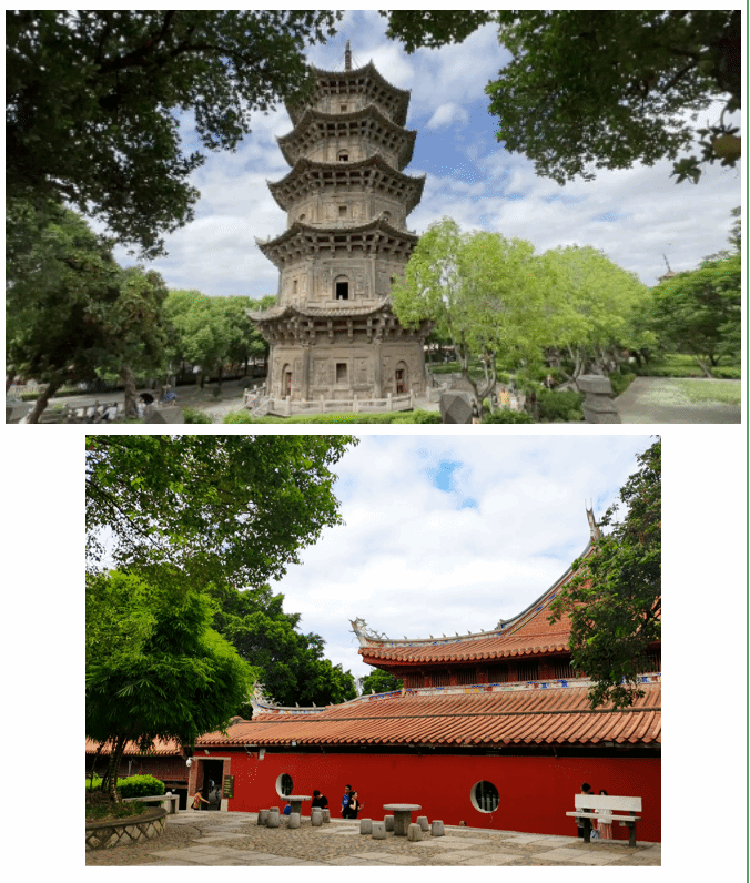 开元寺也是本次实践的重要站点。作为福建省内规模最大的佛教寺院,开元寺的建筑构件、装饰风格融合了佛教、古印度教的文化特征,生动地体现了10世纪至14世纪时期,古泉州港中外宗教与文化、建筑与艺术交融共存的历史风貌。在漫长的古代海上丝绸之路历史中,外来宗教文化在泉州落地生根,同时也打开了中华的宗教文化走向世界的窗口。伴随着凉爽的晨风,实践队员一行人迈入开元寺。穿梭在大殿、宝塔与纪念馆之间,惊叹于精巧的建筑结构,感受着泉州文化的包容性、宗教的丰富性和对外交流的开放性。