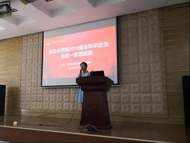 报告厅开讲。自动化学院党委书记潘泉以“秉承西工大精神,做新时代的奋斗者”为题,为学院全体2019届毕业生进行讲授,思政课由辅导员高莹主持。