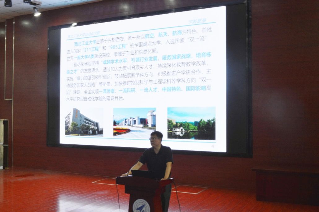 教学办公室李焱、科研办公室淡雪、国际化办公室焦健、学生工作办公室李晨静就教学和课程计划、科研保密、国际化、学生党建为新生做详细政策讲解。
