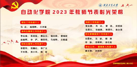 举行庆祝2023年教师节表彰大会暨教师节座谈会。院领导韩军伟、李伟林、刘准钆、管峻、王丽,学院老一辈优秀教师代表史忠科教授,以及受表彰教师、青年教师及学生代表参加表彰大会。大会由学院党委副书记王丽主持。