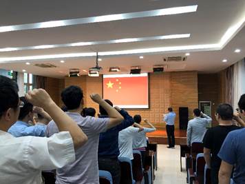 随后,由潘泉书记带领学院全体教师在国旗下宣誓。全体教师起立面向国旗,右手举拳,一起诵读誓词。宣誓仪式气氛浓烈、庄重,每一位宣誓者都充分展现了一名教育工作者的无限光荣和对党的教育事业的忠诚。
