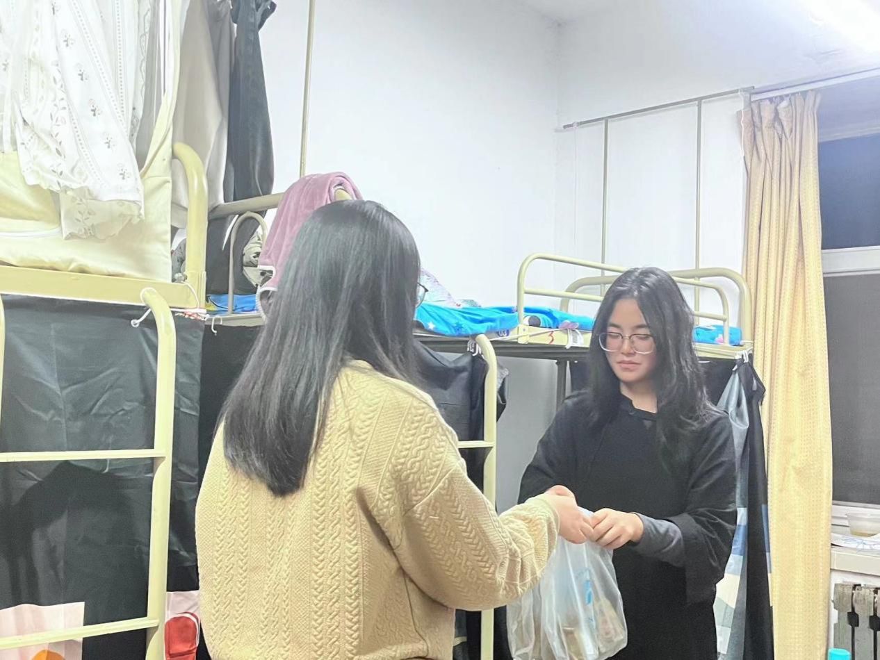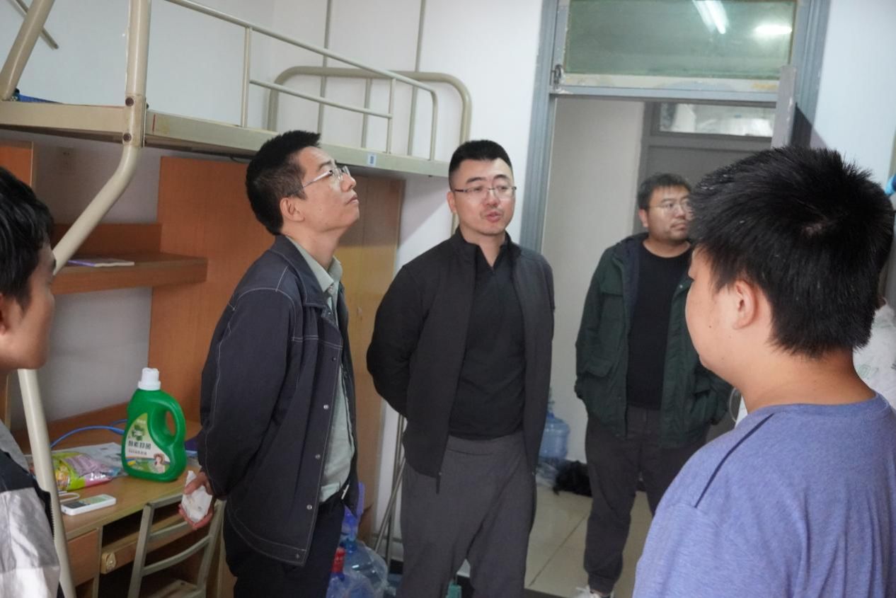 慰问期间,领导老师同时还走访了部分新生宿舍,与新生亲切交谈,进一步询问学习生活情况,并排查宿舍安全隐患。