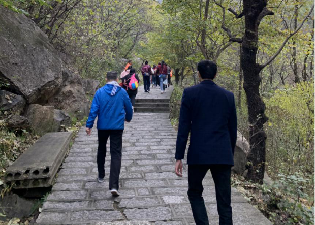 说是比赛,更多是放松,层次分明的颜色,彰显翠华山不一样的韵味,黄而娇嫩的银杏、火红如日的枫叶还有郁郁葱葱的松柏,就这样以最佳的方式组合在了一起,形成如此美景,学院老师一个个健步如飞,时而挥汗,时而欢笑,时而呐喊,在奋力向前中彰显活力,在坚持不懈中突显毅力。