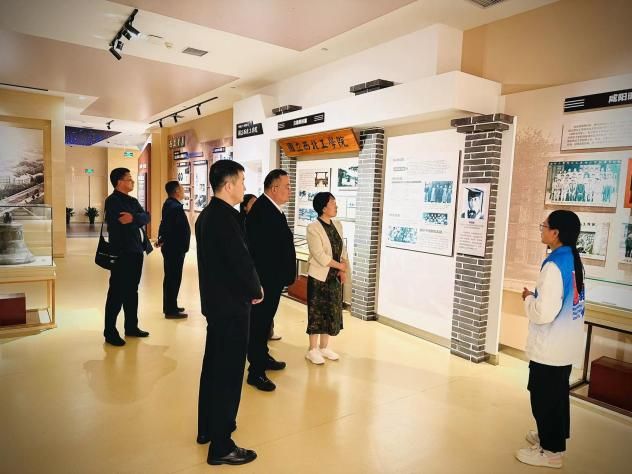 思政课前,平度市参会领导及话剧创作团队参观了学校校史馆、肉漫屋