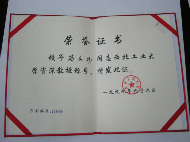 蒋志扬老师获学校“资深教授”证书