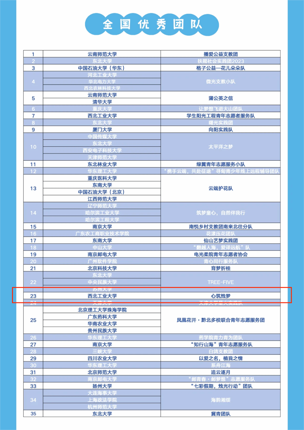 “心筑烛梦”团队凭借出色的表现和卓越的能力,在此次活动中荣获了全国优秀团队称号。这一荣誉不仅凸显了团队在助学支教方面做出的积极努力和贡献,更充分展现了团队成员充满活力和创造力的青年风采。