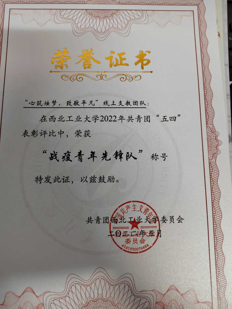 寒假实践一等奖、战疫青年先锋队、优秀调研报告,2023年暑期社会实践二等奖等荣誉。