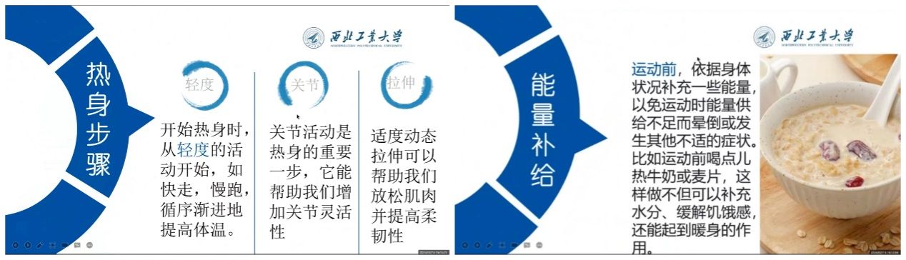 田径队团支部的队员们通过线上腾讯会议的形式,开展了关于寒假科学运动的宣讲活动。宣讲内容涵盖了运动选择、热身流程以及注意事项等多个方面,为同学们提供了全方位的分享。在宣讲前,田径队的同学们已经建立了交流答疑群,为同学们提供了及时的问题解答和指导。通过田径队队员们的细致分享和耐心答疑,同学们收获颇丰,对热身的全流程有了更加科学全面的了解。