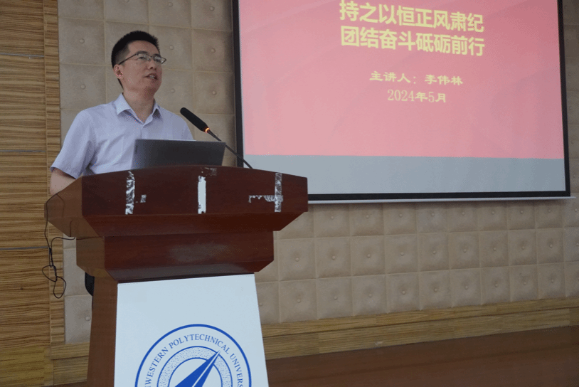 会上,李伟林以“持之以恒正风肃纪,团结奋斗砥砺前行”为题作党纪学习教育纪律专题党课。他围绕党的纪律建设发展历程、党纪学习教育具体要求、解读《中国共产党纪律处分条例》以及学院党纪学习教育开展情况五方面内容作了详细讲述和深刻阐释。