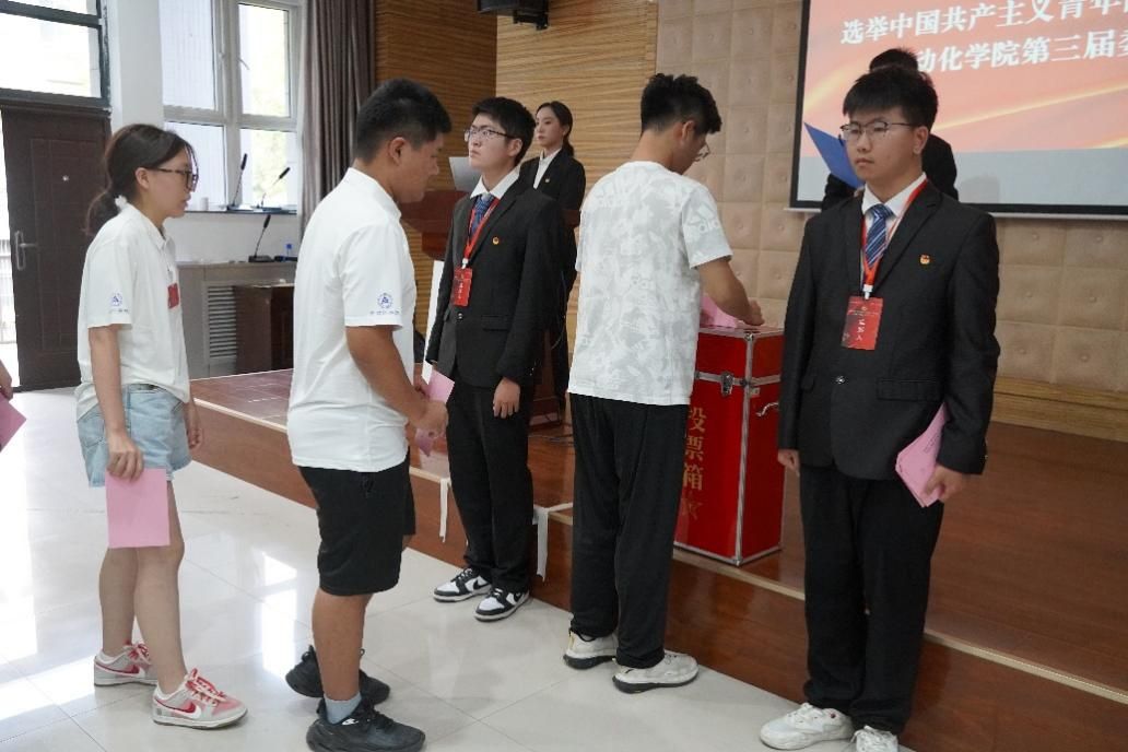 随后,会议秉持着公平、公正、公开的原则进行了无记名投票,经现场计票后,全体代表表决通过选举结果,差额选举出王瑞祥、李乐文、李奥、李嘉燚、杨博丞、郑梦圆、姚悦琛、黄子涵8名团委委员。选举结果由总监票人赫心铭在会上宣布。