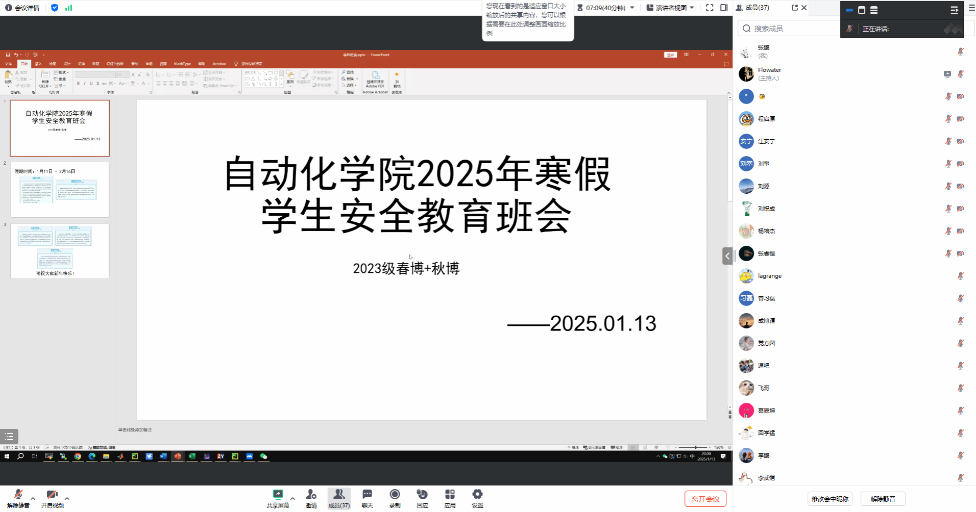 寒假安全教育采用线上线下相结合的方式,以召开大班会的形式展开。各年级辅导员结合学生实际情况和真实案例,针对交通安全、出游安全、消防安全、预防诈骗等方面展开,特别强调了宿舍用电规范,包括正确使用电器、避免私拉乱接电线等,并反复提醒同学们离校前务必关好门窗、切断电源,确保不留一丝安全隐患。