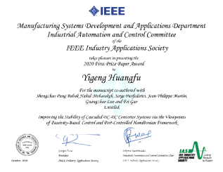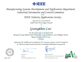 第55届IEEE工业应用协会学术年会(55th IEEE Industry Applications Society Annual Meeting, IAS Annual Meeting)已于太平洋标准时间11月11日-15日以虚拟线上方式召开,该会议原计划在美国密歇根州的工业名城底特律召开。在工业自动化和控制委员会(Industrial Automation and Control Committee,IACC)委员会会议上,组委会宣布了会议论文提交统计和最佳论文评选结果。陕西省新能源与混合动力国际科技合作示范基地骆光照、皇甫宜耿教授与法国洛林大学及法国贝尔福蒙贝利亚技术大学的合作论文摘得最佳论文一等奖。
