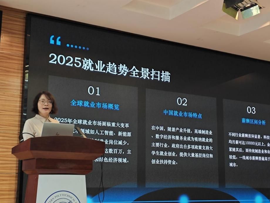专业特色详细分析了当前就业形势、就业市场现状以及就业方向和地域选择考量。重点从学生职业观和就业观塑造入手,解读了企业选人用人的底层逻辑,讲解了简历撰写的实用技巧以及现场面试的应对策略,为同学们明晰职业认知与求职技能提升提供了全面指导。最后,她鼓励同学们树立远大理想,终身学习,在服务国家重大战略的征程中,书写出无愧于时代、无愧于青春的壮丽篇章。