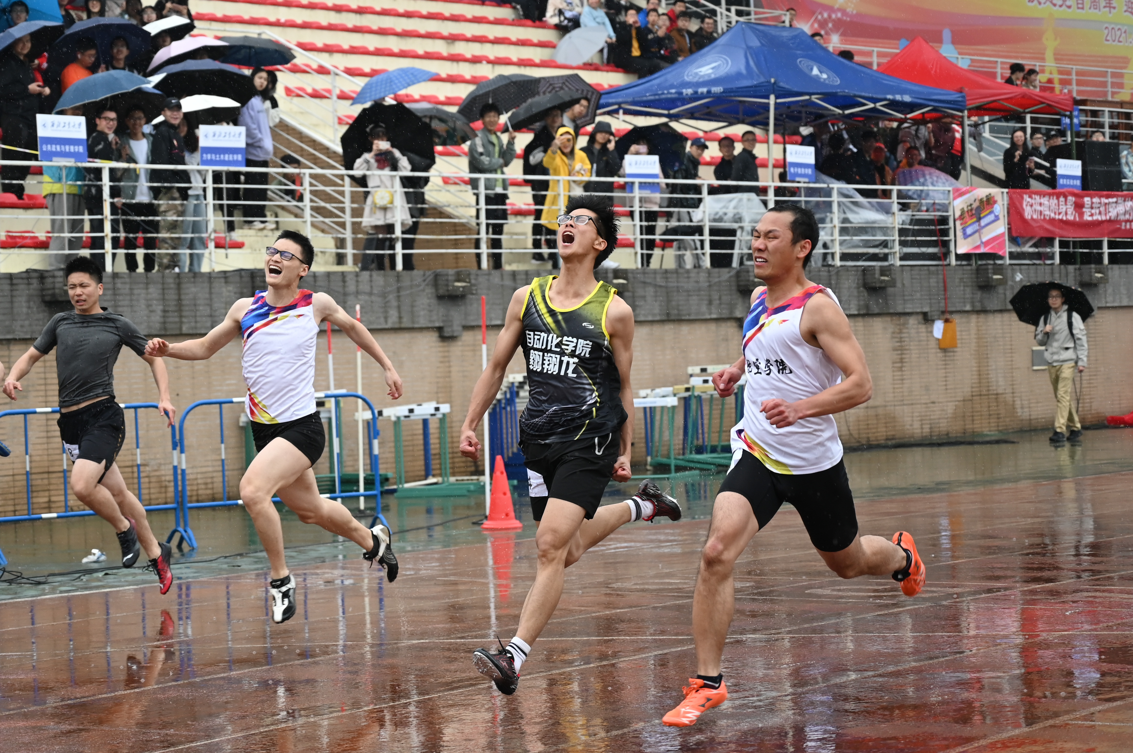 在田径运动会上捍卫荣誉的第一战正式打响。细雨依旧,热情不减,黄警文同学一举夺冠,为后续各项赛事营造了“开门红”的好局面。在两天赛事中,肉漫屋