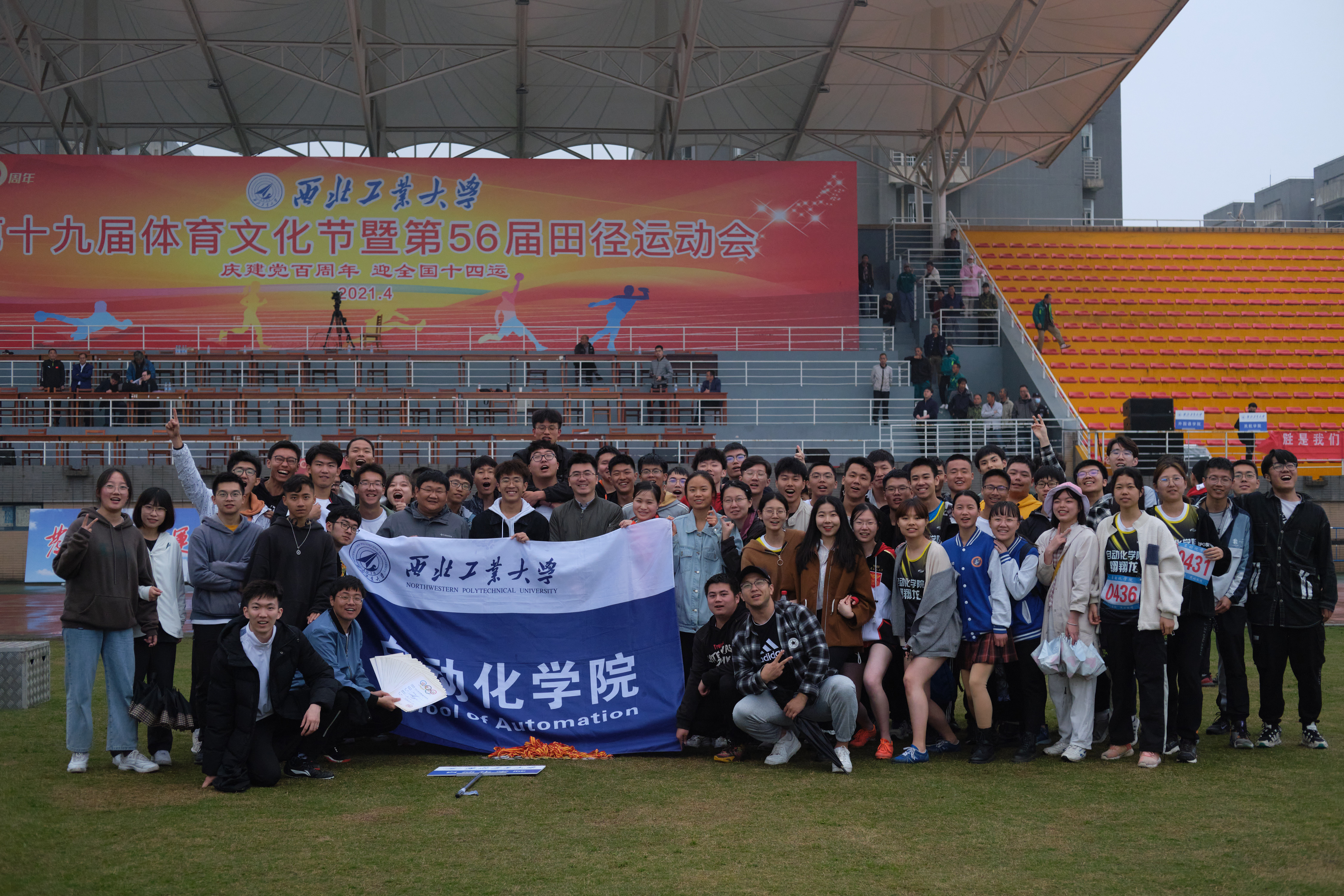 第56届体育文化节开幕式暨校田径运动会在云天苑操场圆满落幕。自动化的运动健儿们包揽了期间全部三类赛事的第一,夺得迎接中国共产党成立100周年“百公里跑”接力赛第一名、广播操比赛第一名、四次蝉联甲组的团体总分第一名。