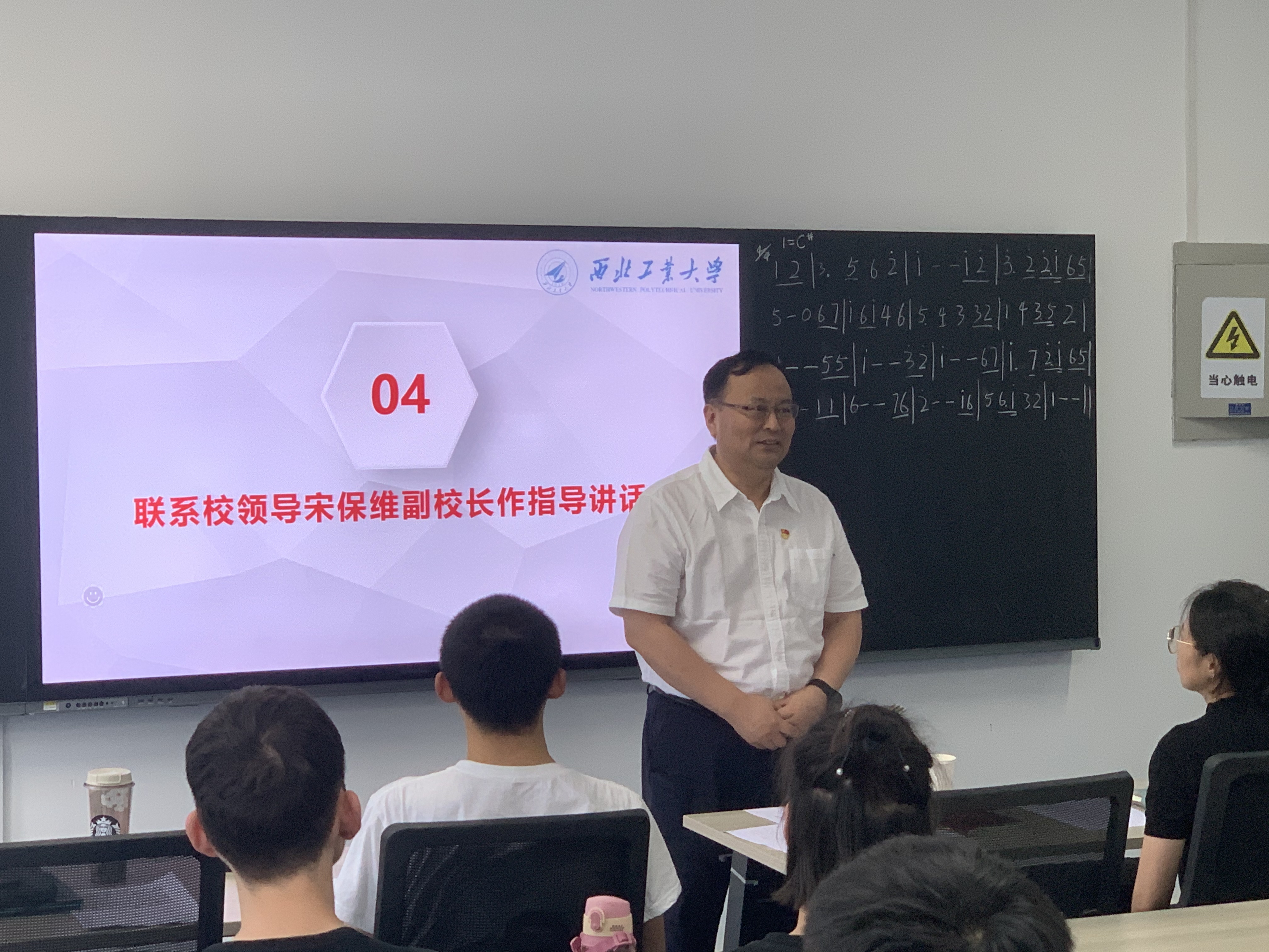 最后,宋保维副校长对此次班会形式、内容和效果都给予了高度的肯定,他结合教育方针的演变以及党的百年历程分享自己党史学习的体会,加深了同学们对中国共产党波澜壮阔的发展历程的感悟与体会。他也指出学校八十多年的发展历程始终与中国现代化事业,特别是与国防现代化建设休戚相关,工大人将爱国情、强国志融入血脉。希望同学们作为新时代的西工大人,不辱时代使命,勇担重任。最后,宋保维副校长勉励同学们积极进取、增长才干,在学习生活当中成为学校班级的标杆,在党史学习教育中走在前做典范。