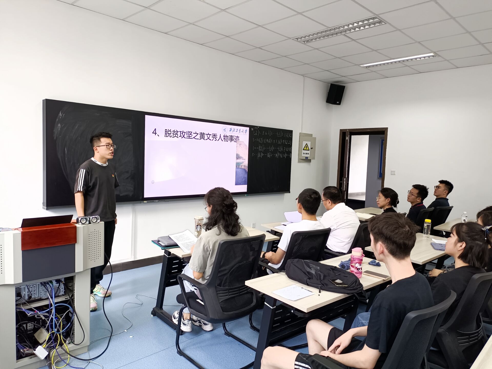 班长过靖昊首先从班级学风建设、思想引领、文体以及科研科技竞赛成果等方面对班级建设情况进行了汇报。在随后的“人人上讲台,大家讲党史”党史学习环节中,范芮滔等5位同学分别以影视片段分析、歌曲演唱、海报制作、朗诵等形式多样丰富多彩的生动形式,为大家讲述了“南陈北李相约建党”、抗美援朝之上甘岭战役、1997年香港回归以及基层党员黄文秀的扶贫事迹等历史事件与人物事迹。在场的同学们积极互动,相互分享了自己在党史学习中的心得与感悟。