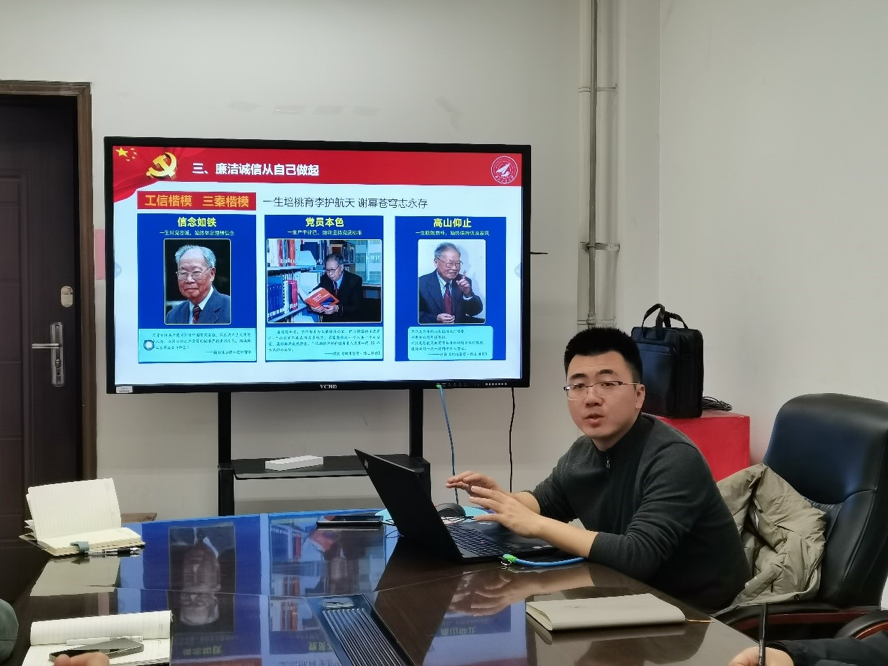 于2021年11月24日在学院323会议室开展题为“廉洁诚信,培养忠诚干净担当的接班人”专题党课,本次党课由学院党委副书记管峻讲授,学院全体辅导员参加。