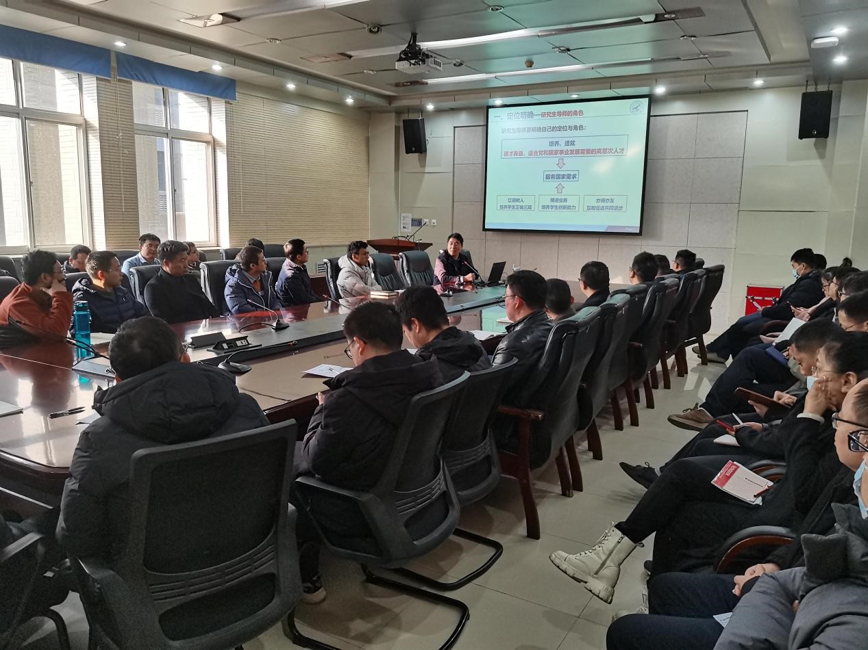 黄攀峰从研究生导师角色定位、帮助学生树立三观、精进科研业务能力、关爱学生等角度,提出导师要终身牢记并笃行研究生培养第一责任人的职责,要坚持教书和育人、言传和身教、潜心问道和关注社会、学术自由和学术规范相统一,做社会主义核心价值观的坚定信仰者、积极传播者、模范实践者;要坚持立德树人,德才兼备,以身作则,帮助学生树立正确的三观;要在注重自身科研业务的同时,加强自我修养,以高度责任感、严谨求实的治学精神和勤奋刻苦的敬业精神去影响和感染学生,使学生在做人做学问双方面都得以受益;要做学生的科研“导航人”,带领学生探索学术前沿,在科研中培养学生以科学有效的研究方法解决实际问题的能力和意识。;要真心关爱学生,鼓励学生发挥特长,去不同行业挑战自我,服务国家国防建设和经济发展。