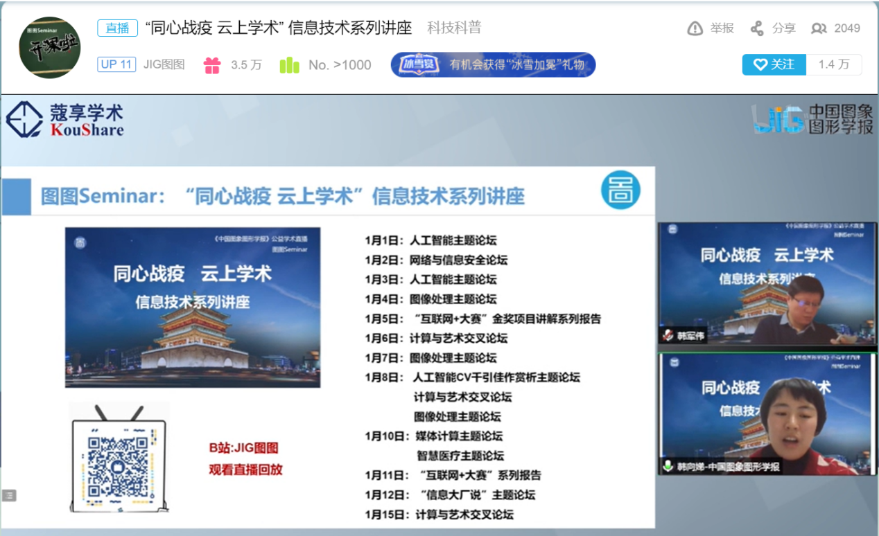 参与牵头、率先倡议,中国科学院空天信息创新研究院、陕西省计算机学会、西安交通大学、西安电子科技大学、上海科技大学、中科院计算技术研究所、华中科技大学、中科院信息工程研究所等多所国内著名高校和学术研究团体共同策划、组织。从1月1日起,活动相继推出了人工智能、图像处理、网络与信息安全、计算与艺术、媒体计算、智慧医疗、信息大厂说、互联网+大赛金奖项目解读等8个主题共16场讲座。中国科学院空天信息创新研究院院长吴一戎院士,西安交通大学电子与信息学部主任管晓宏院士,西安电子科技大学人工智能学院焦李成院士,肉漫屋