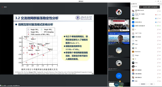 下午场由周中正、齐扬两位副教授主持。南京航空航天大学吴红飞教授作“电力电子集成——元件、网络和系统”报告,以功率元件、高频开关网络和多变换器组合系统的集成切入探讨了电力电子系统集成的实现思路与方法。河北工业大学辛振教授作“电力电子系统电磁状态感知与集成”报告,讲述了电力电子电磁状态感知技术所面临的技术挑战和研究进展。四川大学王顺亮副教授作“直流断路器与限流器拓扑结构研究”报告,针对直流断路器和限流器应用需求介绍了典型拓扑结构及改进方案。航空工业陕西航空电气有限责任公司研发中心副所长张博健博士作“飞机电气系统发展趋势及关键技术分析”报告,阐述了多电/全电飞机电气系统发展趋势及供电系统设计、集成验证方面的关键技术。重庆大学王宇教授作“微电网信息物理系统的分布式协同控制”报告,提出了改进通信效率、缓解延迟、提高系统韧性的控制算法并展望了未来研究方向。山东大学邢兰涛教授作“Event-triggered Control with Its Application in Power Systems”报告,通过实例举证介绍了事件触发控制在电力系统中的应用情况及主要研究成果。西安交通大学韩春阳副教授作“有温度自补偿功能的宽频带光纤电场传感器”报告,针对现有光纤电场传感器面临的问题提出一种以特种功能光纤取代分立光学器件、进而形成全光纤电场传感器的新思路。