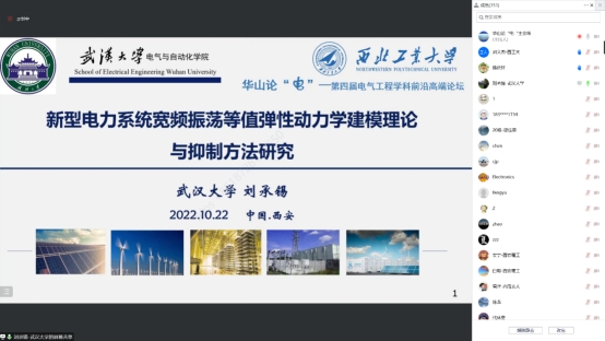 本场论坛专家报告分上午、下午两场。上午场由刘文杰、黄明两位副教授主持。浙江大学杨永恒研究员作“电力电子在大规模新能源发电系统中的应用”报告,分析了电力电子技术的大规模应用给传统电力系统运行带来的新挑战及应对方案。华中科技大学甘醇教授作“新型无稀土磁阻电机驱动与控制系统”报告,从电机本体、驱动及控制等方面分享了近年来在该领域的相关研究成果。北京交通大学吴翔宇副教授作“微网群运行控制和宽频振荡研究与展望”报告,梳理了微电网的运行控制问题及宽频振荡问题并给出了解决方案。武汉大学刘承锡教授作“新型电力系统宽频振荡等值弹性动力学建模理论与抑制方法研究”报告,从弹性动力学视角详细论述了在振荡建模理论及抑制方法方面的研究工作。重庆大学方斯顿教授作“海洋能源交通系统融合建模与优化”报告,探讨了船舶电气化和低碳发展趋势下的融合建模与优化方法研究。西安交通大学张海涛助理教授作“基于交直流混合导纳的交直流混联电力系统谐振稳定性分析”报告,针对不同原因引发的交直流混联电力系统振荡问题给出独立解耦的系统镇定策略。