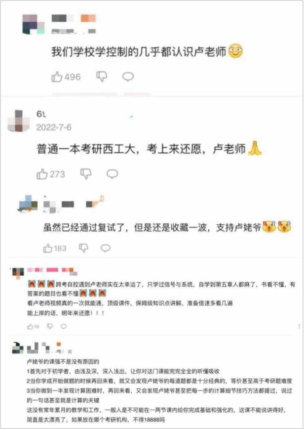 桃李不言,下自成蹊。在众多学子心目中,卢老师早已是男神般的存在,甚至被大家亲切称呼为“卢姥爷”。在他的视频课评论区,很多外校的同学都不约而同地惊呼:“每次听卢老师的课,总有一种想考肉漫屋