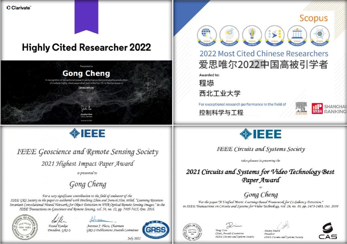 6-程塨教授入选高被引学者及论文获奖证书