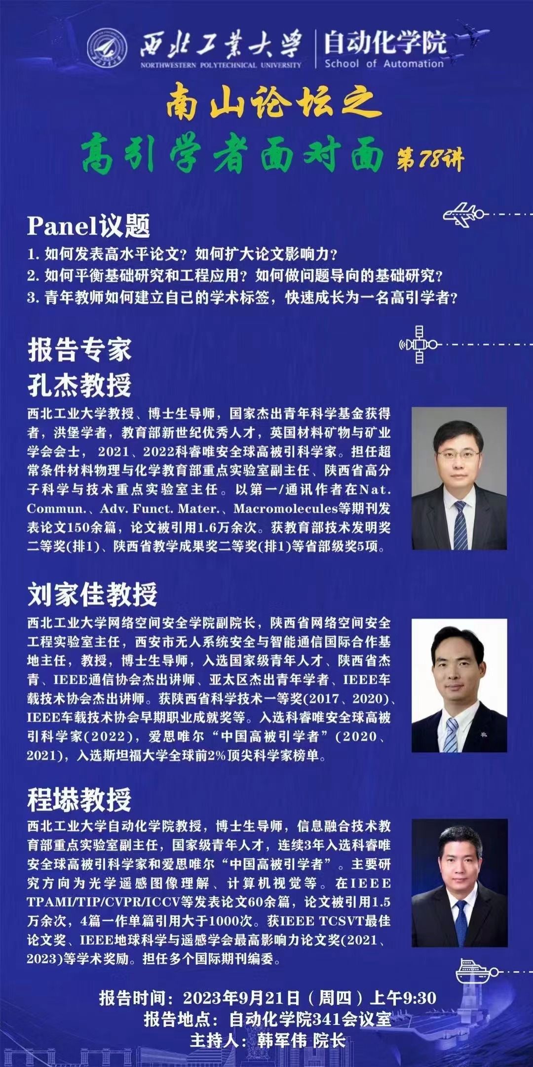 【肉漫屋 南山学术论坛之高引学者面对面】报告通知(第78讲)