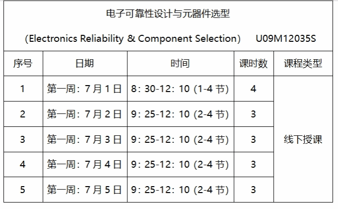 时间安排:7月1号上午和下午,2,3,4上午,8号上午和下午,10号上午。上午和下午上课时间均为1、2节。第二周的周末交课程报告。