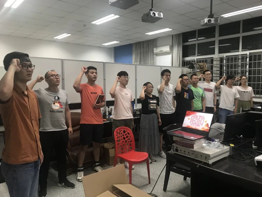 观看结束后,支部成员就纪录片内容发表了各自的观看心得。交流讨论结束后,在支部书记宋思宏的带领下,全体支部成员右手握拳,在党旗下庄严宣誓了入党誓词,字字铿锵,句句有力。