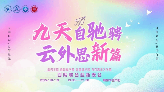 联合航天学院、外国语学院、马克思主义学院,共同举办了“九天自驰骋,云外思新篇”四院联合迎新晚会。