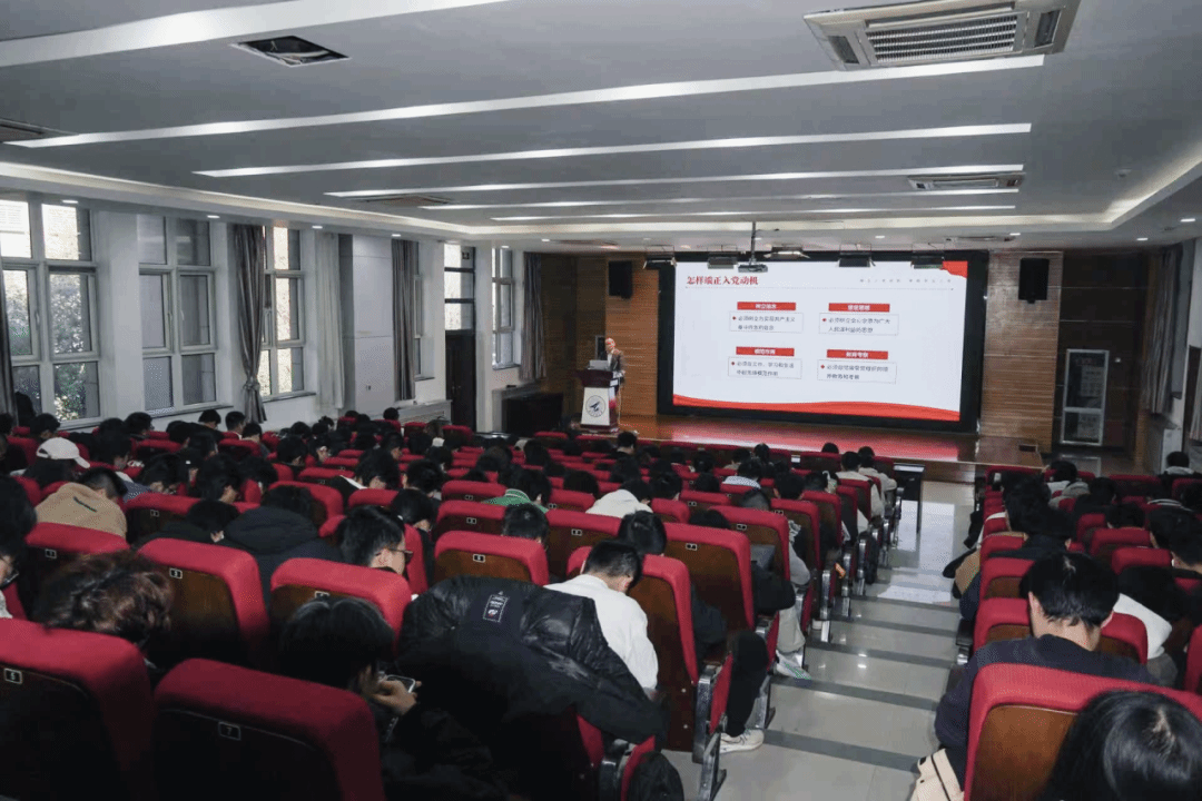 党委书记孙华强讲授“端正入党动机,争取早日入党”主题党课。学院入党积极分子、发展对象及部分本科生参与学习。