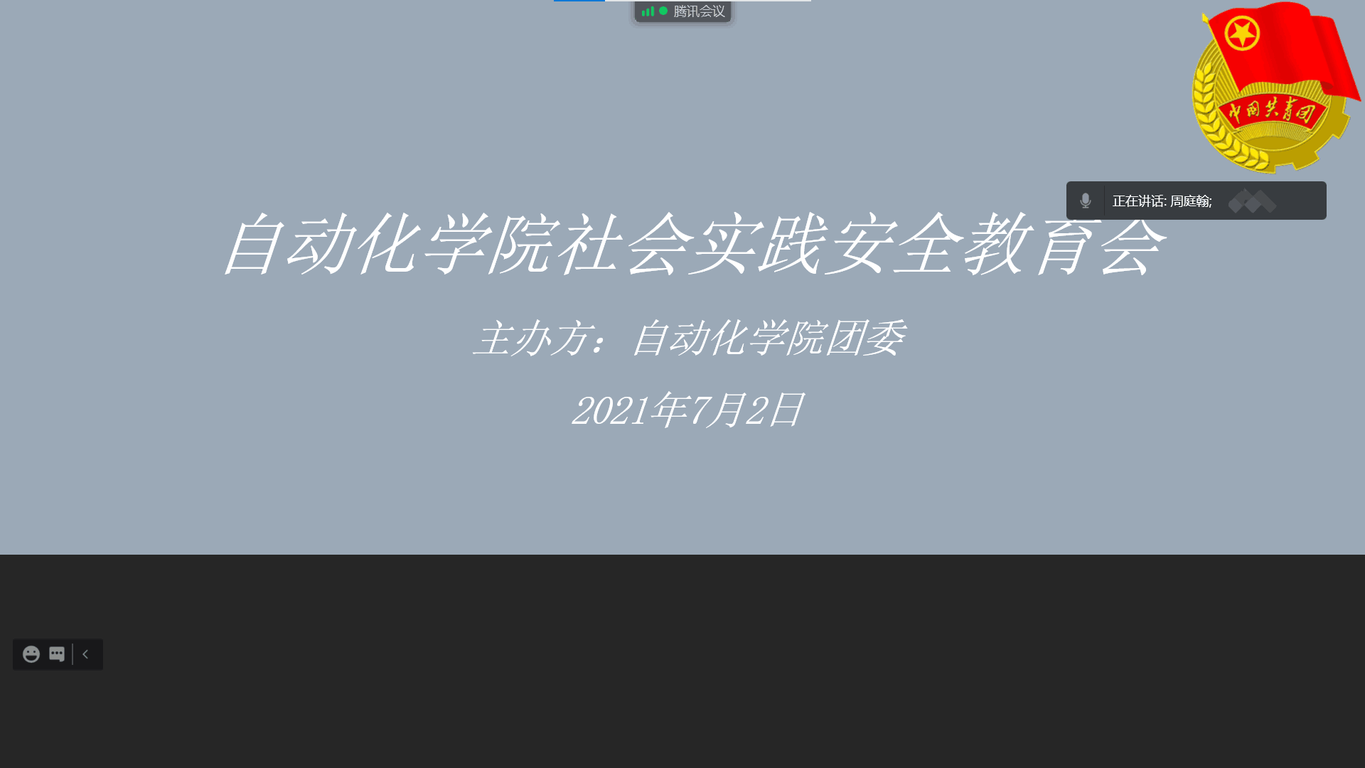 团委在线上开展2021年暑期社会实践安全教育大会,学院团委副书记周庭翰出席本次会议并对同学们进行指导。