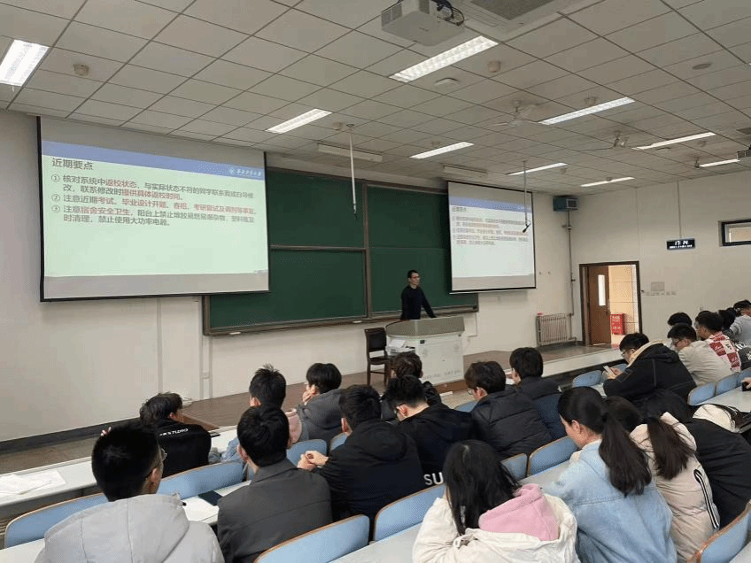 2019级本科生春季学期第一次大班会于教学西楼D座305教室顺利召开。本科生辅导员白浩、周中正以及2019级全体学生参加了本次大班会。