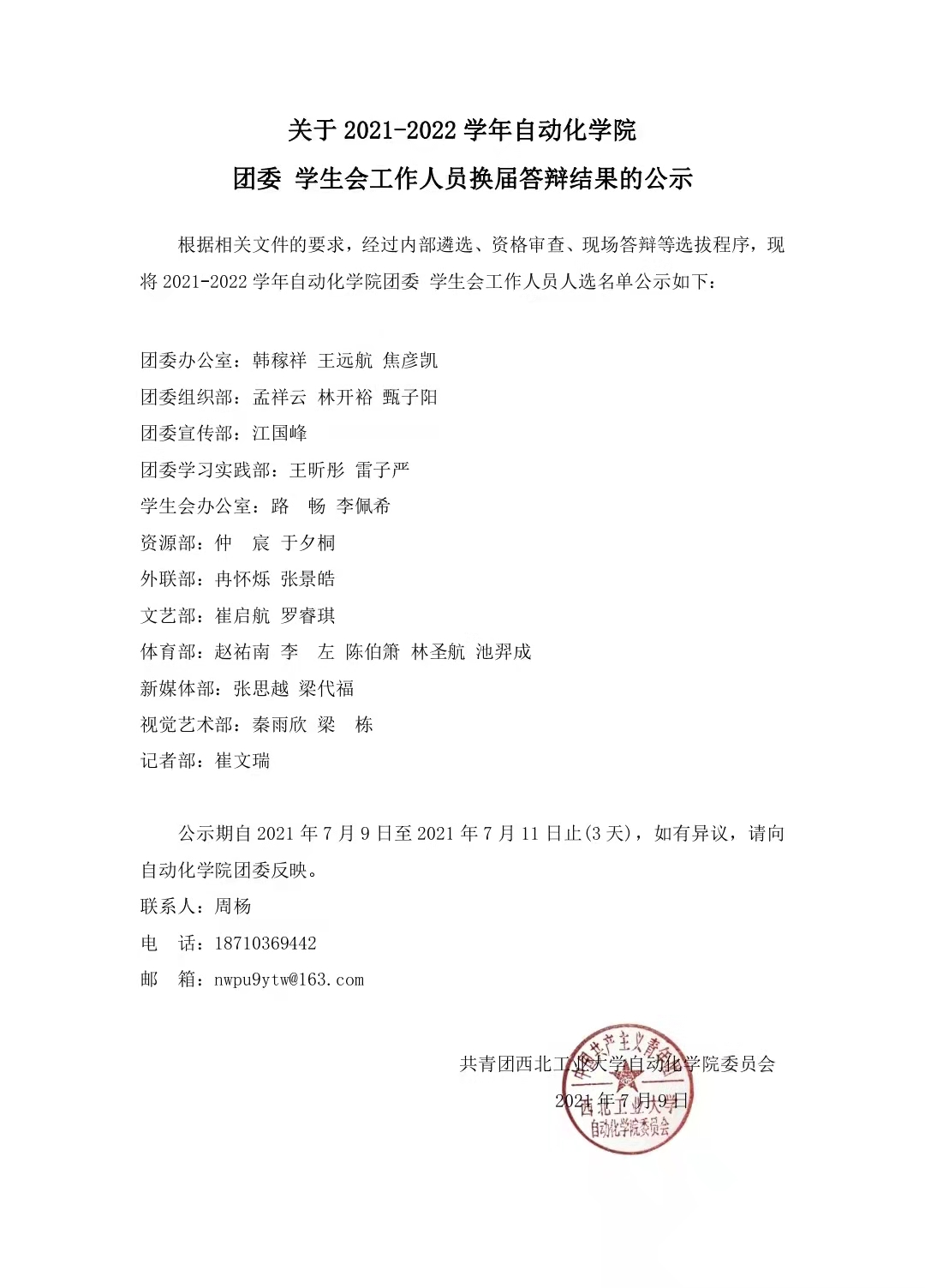 关于 2021-2022 学年肉漫屋 团委 学生会 工作人员换届答辩结果的公示